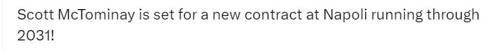 贾马里奥利示意,若是本年夏天有高额报价,麦克托米内可能会离开球队。他还将这种情况对比德甲的斯图加高出售尼克·沃尔特马德的情形,后者加盟了英超的纽卡斯尔联。