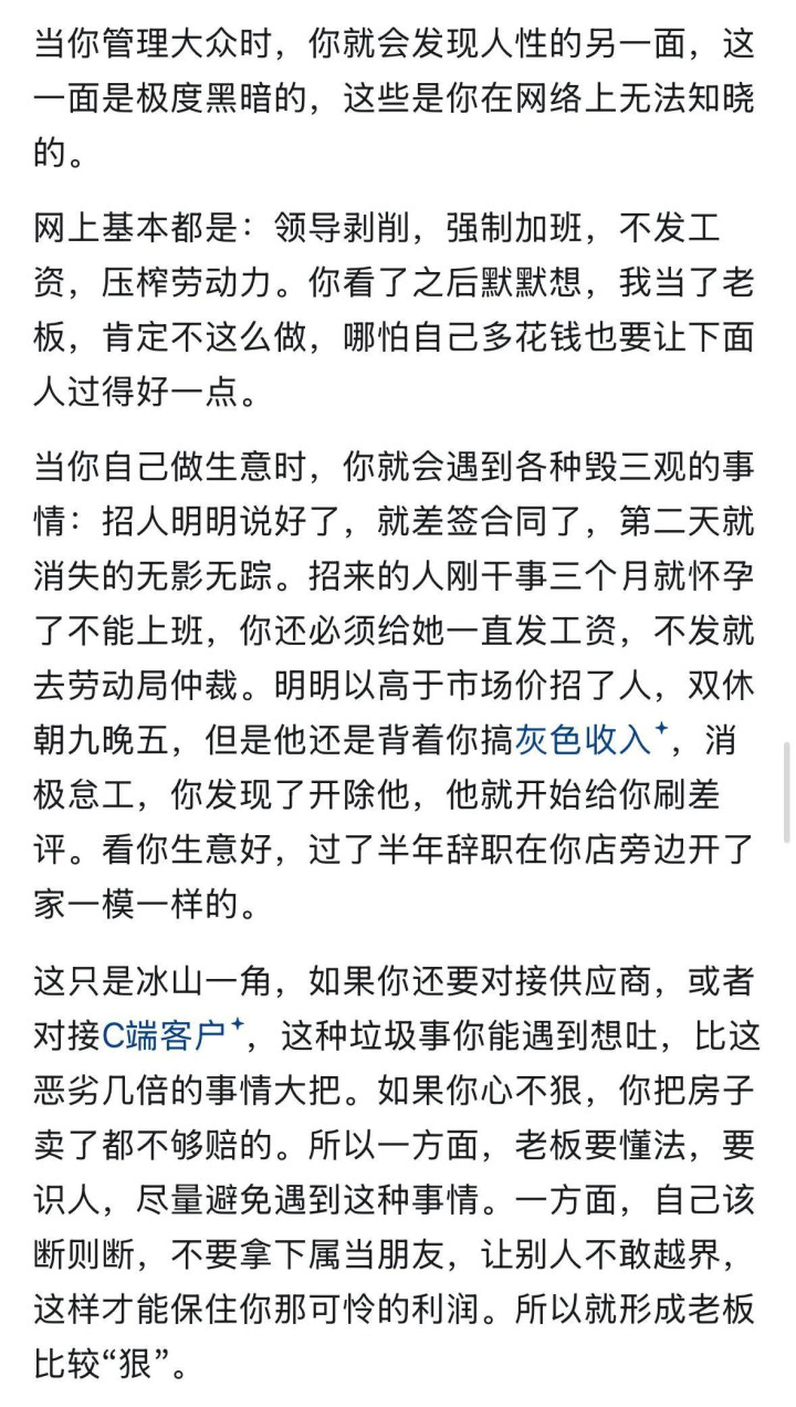 无奸不商,商务处置的底层逻辑,其实等于条款和制约。是以做生意的也许不懂处置,但他懂工东说念主,懂东说念主性,懂和煦是要付出资本的。客不雅上也就幸免了交易风险。