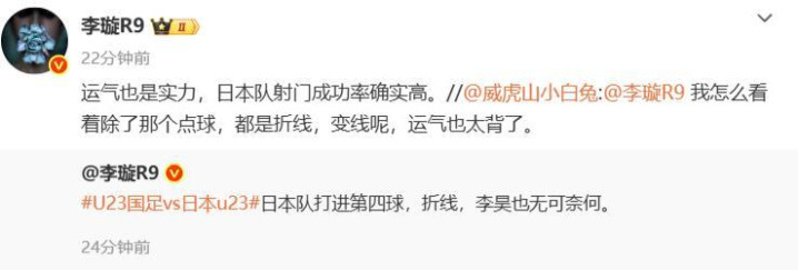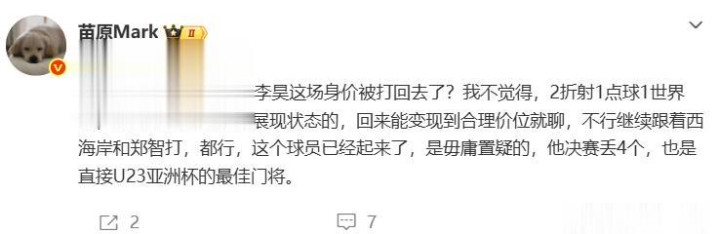 《足球报》记者李璇也很是无奈,日本队打进折射球如实有命运,但命运亦然实力,日本队射门收服从比拟高!苗原合计,国足门将李昊的身价并莫得被打且归,这名球员也曾打出来了,决赛诚然丢4个球,但他如故U23亚洲杯最好门将!