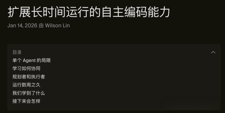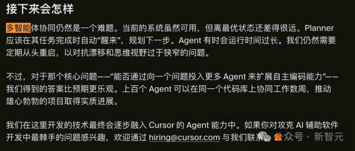 Cursor团队末端了上百个Agent不错在消释个代码库上协同使命数周,险些莫得代码冲突。
