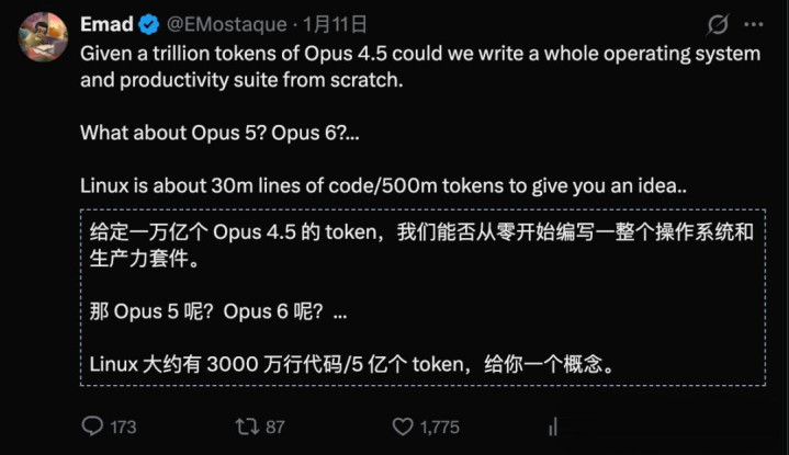 他还有一个思法:用若干token能够重写一套Windows级别的操作系统?资本怎么?
