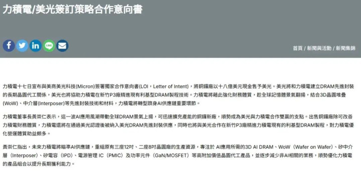 1月17日,晶圆代工大厂力积电晓喻与好意思光科技签署独家协作意向书(LOI),将铜锣厂以18亿好意思元现款售予好意思光。好意思光将和力积电建立DRAM先进封装的恒久晶圆代工关系,好意思光也将协助力积电在新竹P3厂精进现存利基型DRAM制程时代。