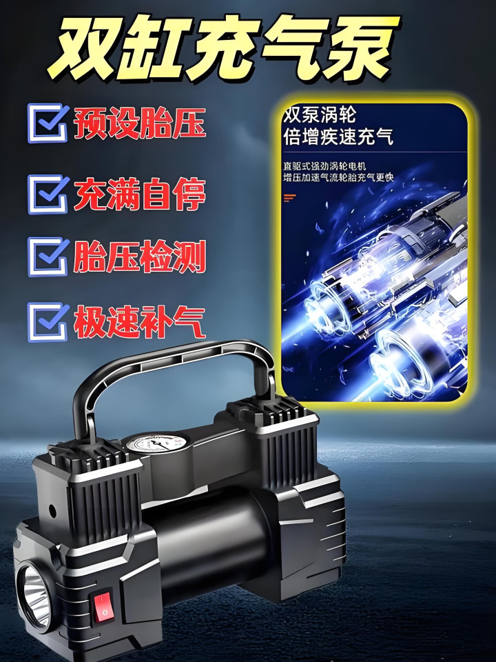 淌若你开的是SUV、越野车,或者平庸拉重物,千万别贪低廉买单缸。双缸充气泵天然贵了一两百块,但气压更足,充气速率能快一倍。我之前给一又友推选的双缸泵,充一台SUV的轮胎也就3分钟,反不雅单缸泵,充一个胎就得等七八分钟,慌乱赶路的时候能把东说念主急疯。