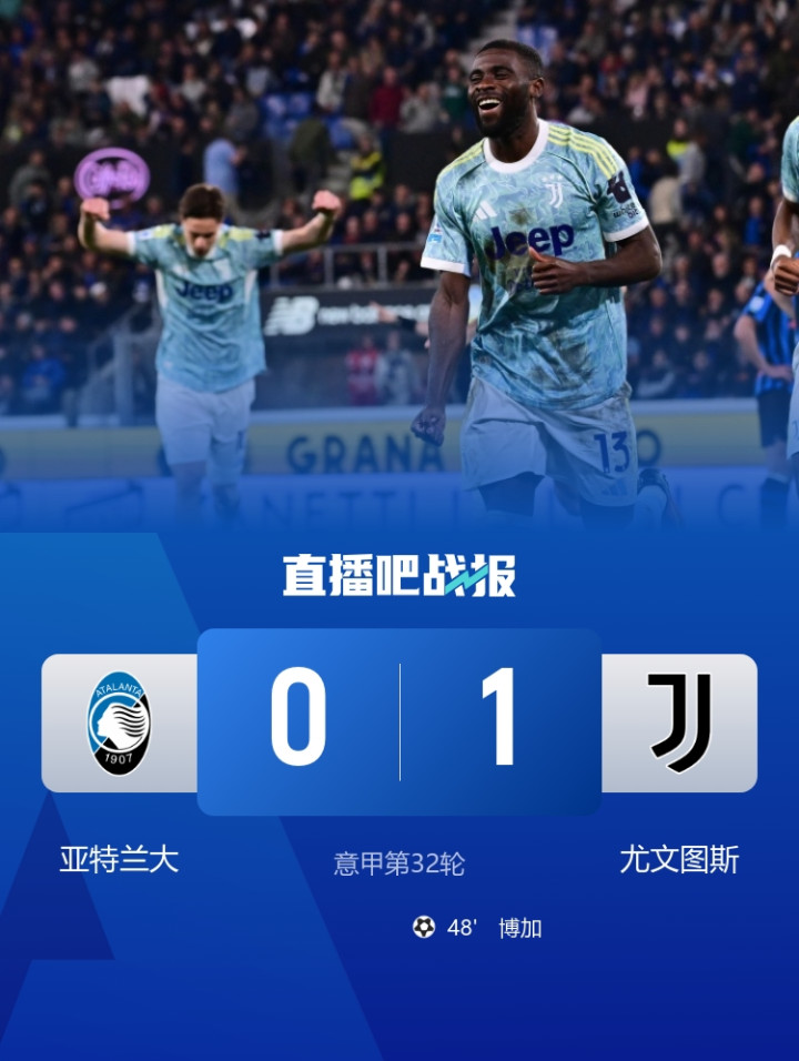 博加破门制胜,尤文1-0亚特兰大。积分榜方面,尤文60分先赛暂升第四,亚特兰大53分第七。