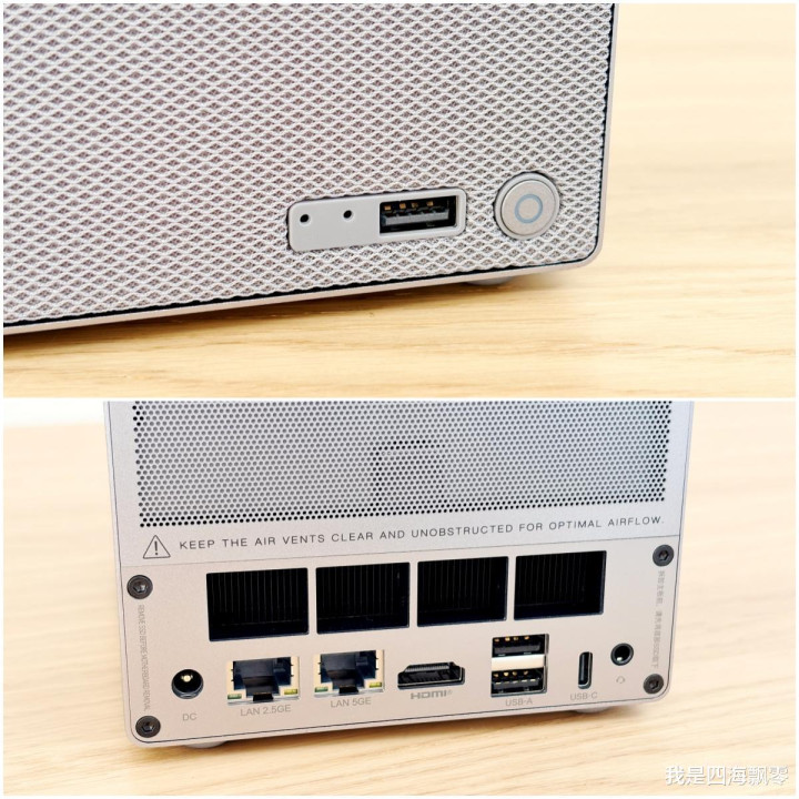天然包装盒上零刻官方标注的品类是迷你电脑,但NAS的本体其实便是一台迷你电脑。单论迷你电脑的身份,它的硬件建立其实不算非常出彩;但如若把它动作NAS来看,其配备的12GB内存、128GB M.2 PCIe 3.0固态硬盘、WiFi 6无线网卡,以及5GE+2.5GE双网口,就足以证明这是一台定位明确的主流家用NAS。