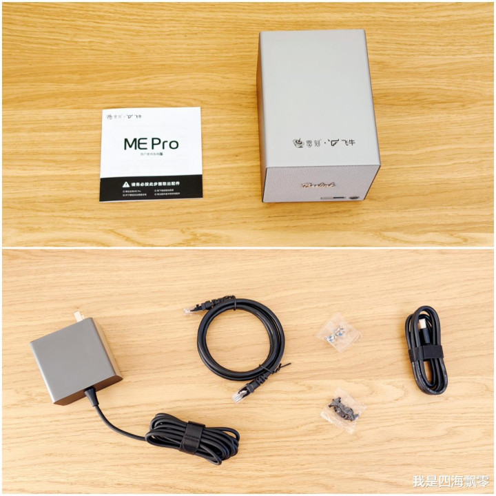 零刻 Me Pro的包装盒并非当下游行的彩盒联想,单看包装的话,统统不像是一台NAS居品。不外从包装盒的侧面能看到零刻和飞牛的双品牌logo,这才证据它照实是一台NAS。也由此能看出,零刻已然成为铺张级NAS阛阓的新晋品牌。