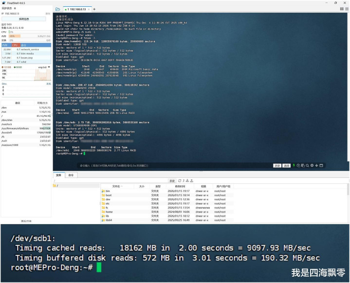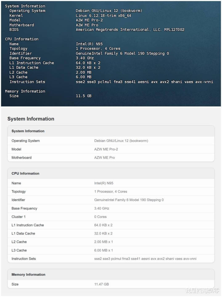 通过SSH皆集零刻ME Pro,再借助GeekBench 6.5 for Linux进行检测后,它的硬件建立便一目了然。这么的建立推崇,关于一台家用NAS而言,统统能安闲家庭用户的需求。