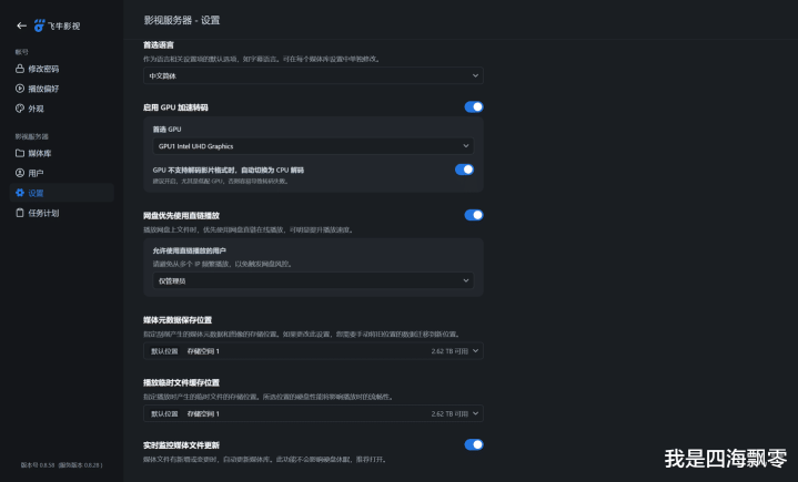 飞牛影视亦然相沿期骗GPU加快转码,对高码率的视频进行硬解码镌汰CPU处理器的负载,从而提高GPU的使用率。