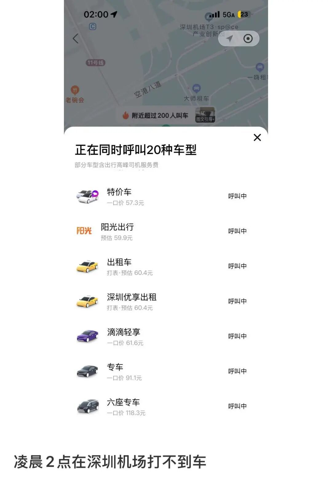 “机场打车12公里都要被骂”、“南山宝安的不配打车”……网友们纷繁投诉,因距离近被拒载。网约车通说念相通令东说念主头疼,网友“momo”晒出的截图自满,凌晨的机场,页面显豁指示“隔邻突出200东说念主叫车”,她打了半小时车、反复追加叫车,最终只可选拔网友共享的决窍,坐夜班公交车脱离机场鸿沟后,才“秒打到”车。还有乘客吐槽,好拒接易打到网约车,却因看法地是宝安洪浪北,“被司机说了一齐,说泰更阑的没钱赚”。