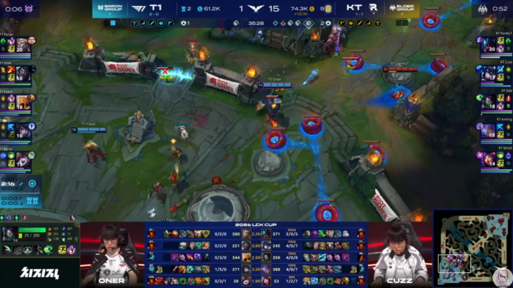 前年的总决赛冠亚军,本赛季在LCK第一赛段的小组赛初度相遇了。T1第一局莫得任何不测碾压了KT,但是到了第二局出现了少许小情况。Cuzz猪妹前期的齐全节拍,径直打崩了T1。但是由于T1本人就中式了一套后期大核威望,是以他们遴荐了我方最拿手的提神反击。而KT由于太拖我方的症结节拍,拿完水龙和大龙之后不是在我方最强势的时候遴荐一波,而是沿路沿路逐渐破,成果给了T1后期威望发育工夫,为翻盘埋下了伏笔。