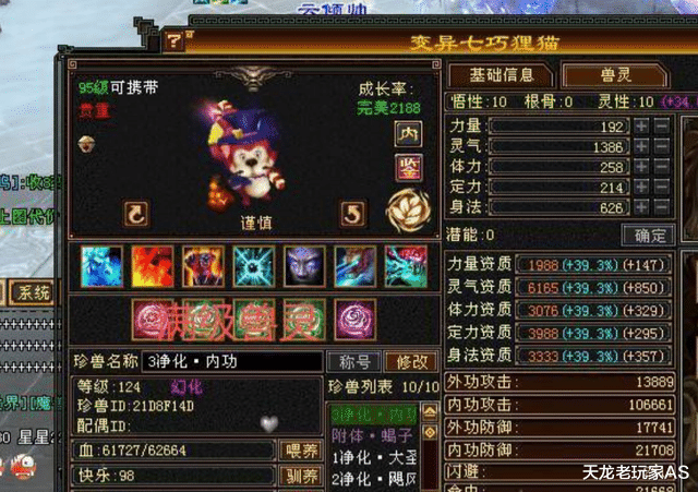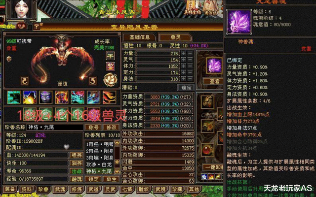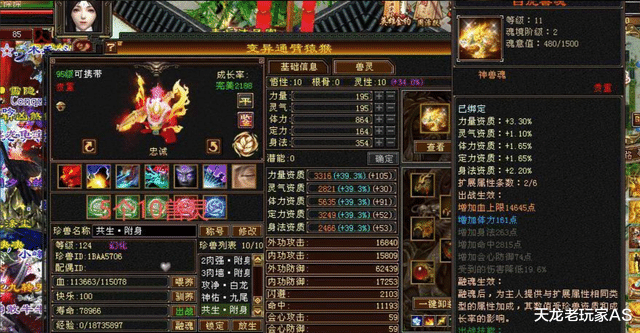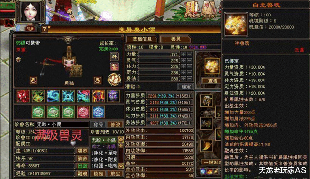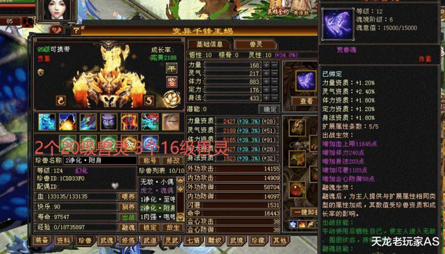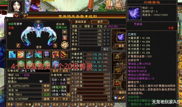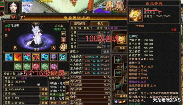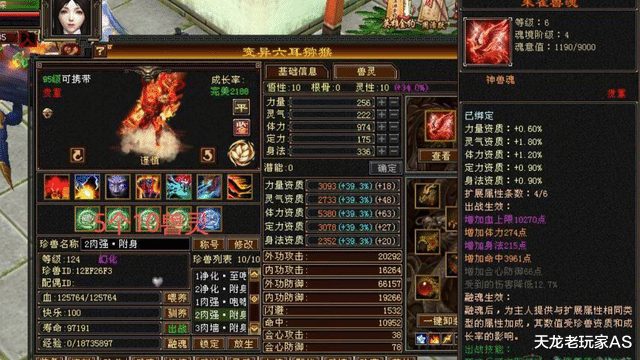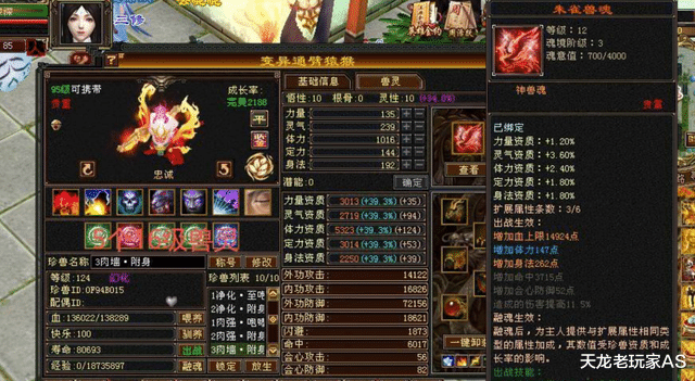 此外身上还有12只顶级天花板装备,其中两只满兽灵: