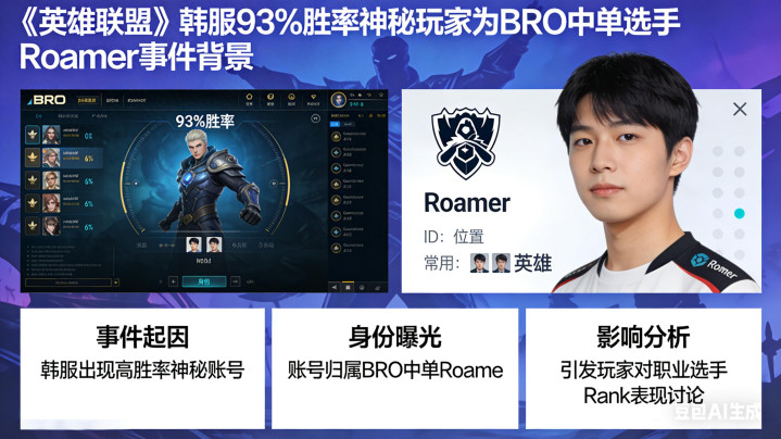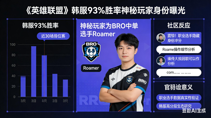 Roamer 在韩服以 93%的高胜率冲上群众段位,引起了社区平凡忖度。这一数据在任业选手中也属荒废,因此激励诸多珍贵,直到官方采访证实其身份。