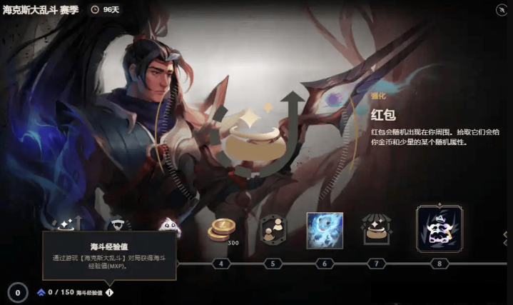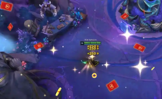 ·红包贺喜:每25-15秒,你的周围将随即刷新红包,拾取后可赢得(10-28)~(18-58)金币、4秒的150点移动速率加成,并随即赢得以下一项属性:(1)5点挫折力+5点法术强度;(2)5点手段急速;(3)5点护甲+5点魔抗;(4)10%挫折速率;(5)5点移动速率;(6)5点穿甲+5点法穿。
