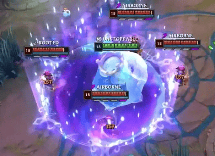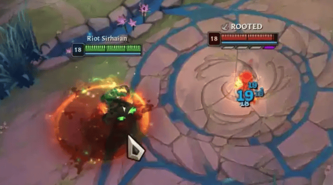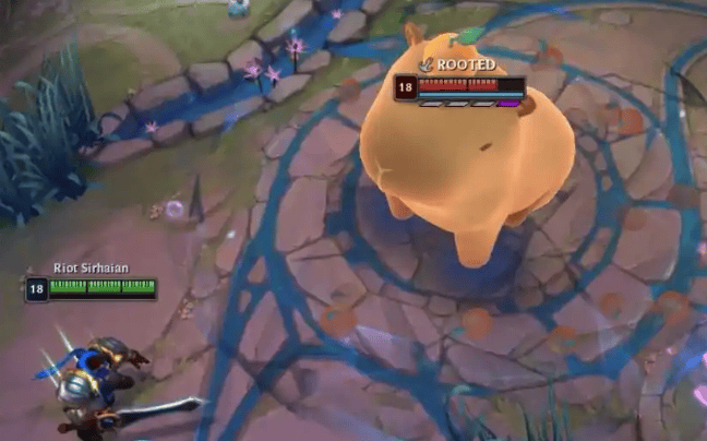 此外,魄罗王每秒会跃向空中并猛砸大地,对近邻敌东谈主形成100-300(+5%独特生命值)(+100%基础挫折力)(+50%法术强度)的物理伤害并将其击退。每次施法,魄罗王无法对归拢敌东谈主屡次形成击退收尾。