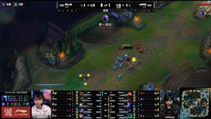 [17:08]BLG中路放出时尚撞掉JDG一塔,BLG经济超越2k。
