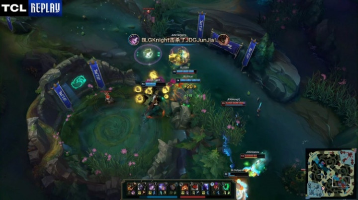 [19:20]knight辛德拉脸探自家野区草丛被JDG野辅逮捕,Junjia石头东说念主拿到knight大东说念主头。