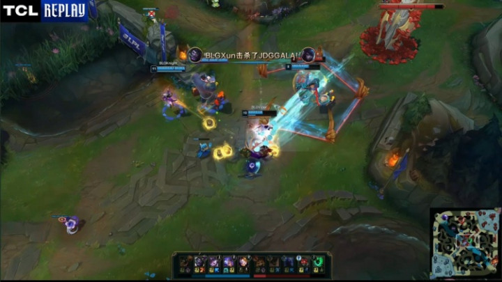 [12:20]动身混战,knight辛德拉再次越塔协作四队友击杀xiaoxu纳尔,GALA与Vampire推掉BLG下路一塔,两边经济差距不大。