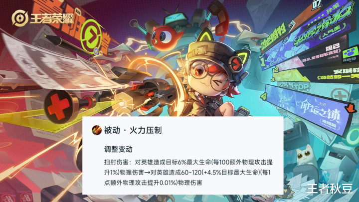 鲁班七号曾被认为是打坦克前排最快的弓手,然而遭到了两大减弱。第一即是被迫的扫射伤害从方针6%最大人命值缩小到60-120(+4.5%方针最大人命),可别轻篾了这1.5%的伤害,屡次下来,打肉伤害是明显的缩小,小鲁班打肉慢了很多,伤害龙套从前。这也得当筹办说互秒情况的减少。