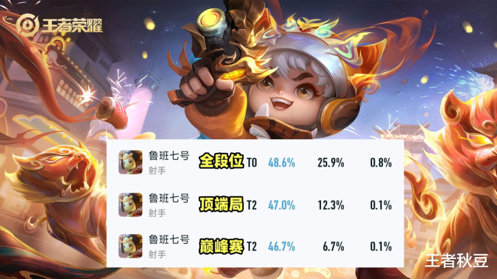 截止1.24日,鲁班七号三榜胜率不错用目不忍睹来描摹。全段位胜率48.6%,发育路倒数第四!尖端局胜率47%,发育路倒数第二!巅峰赛胜率46.7%,发育路胜率倒数第一!三榜胜率王人是倒数,稀奇是越高端的对局,胜率越低,登场率从25.9%着落到12.3%鄙人降到6.7%。从数据看,鲁班七号即便喜提新皮肤,强度却依旧拉垮,急需要一波加强。