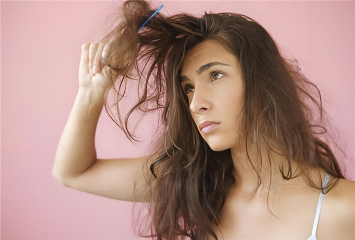 头皮干燥,发丝干枯毛躁,易分叉