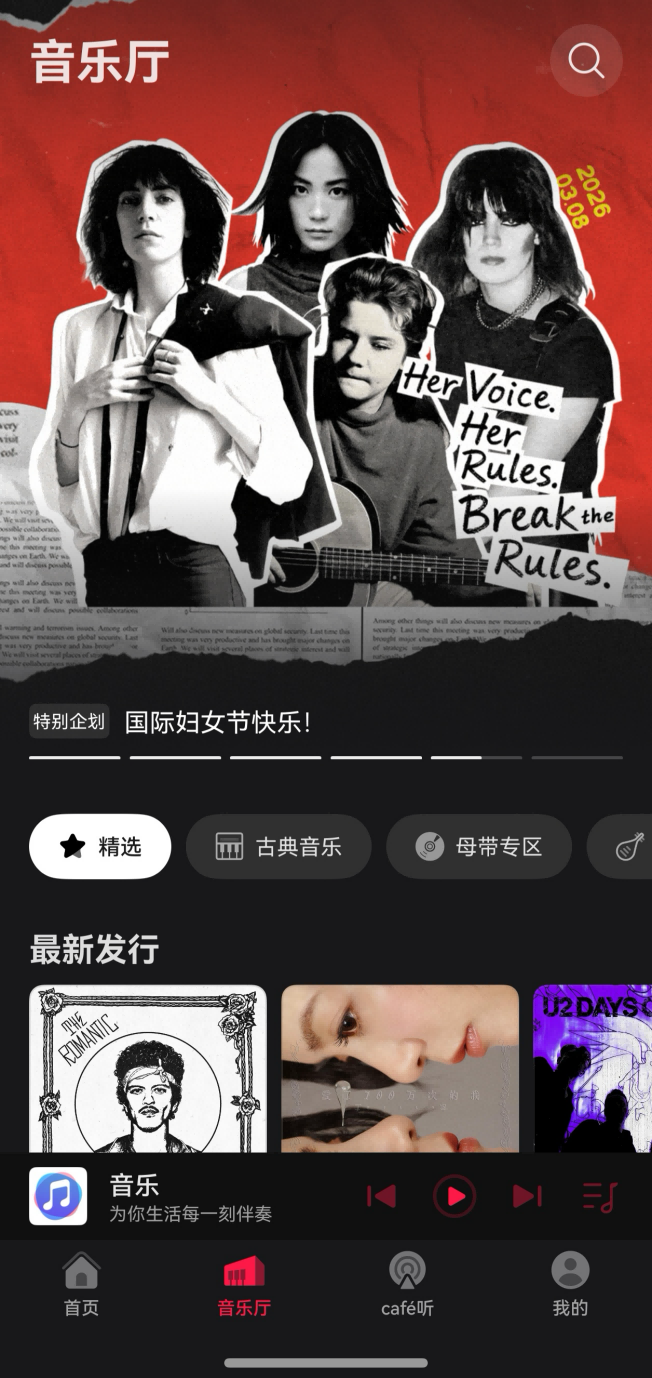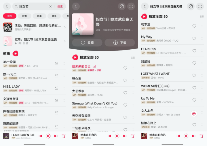 淌若诸位姐妹妇女节这天念念跟我相同换点不同的过法,不错掀开华为音乐在搜索框搜索“妇女节”,不仅能在“擢升时间的女性乐章”专题中前排不雅看大女主脚本,还能凝听“她本就解放丧胆”妇女节专属歌单,愿每个东谈主皆能像这些歌里唱的那样,果敢作念我方,活成我方念念要的样式。