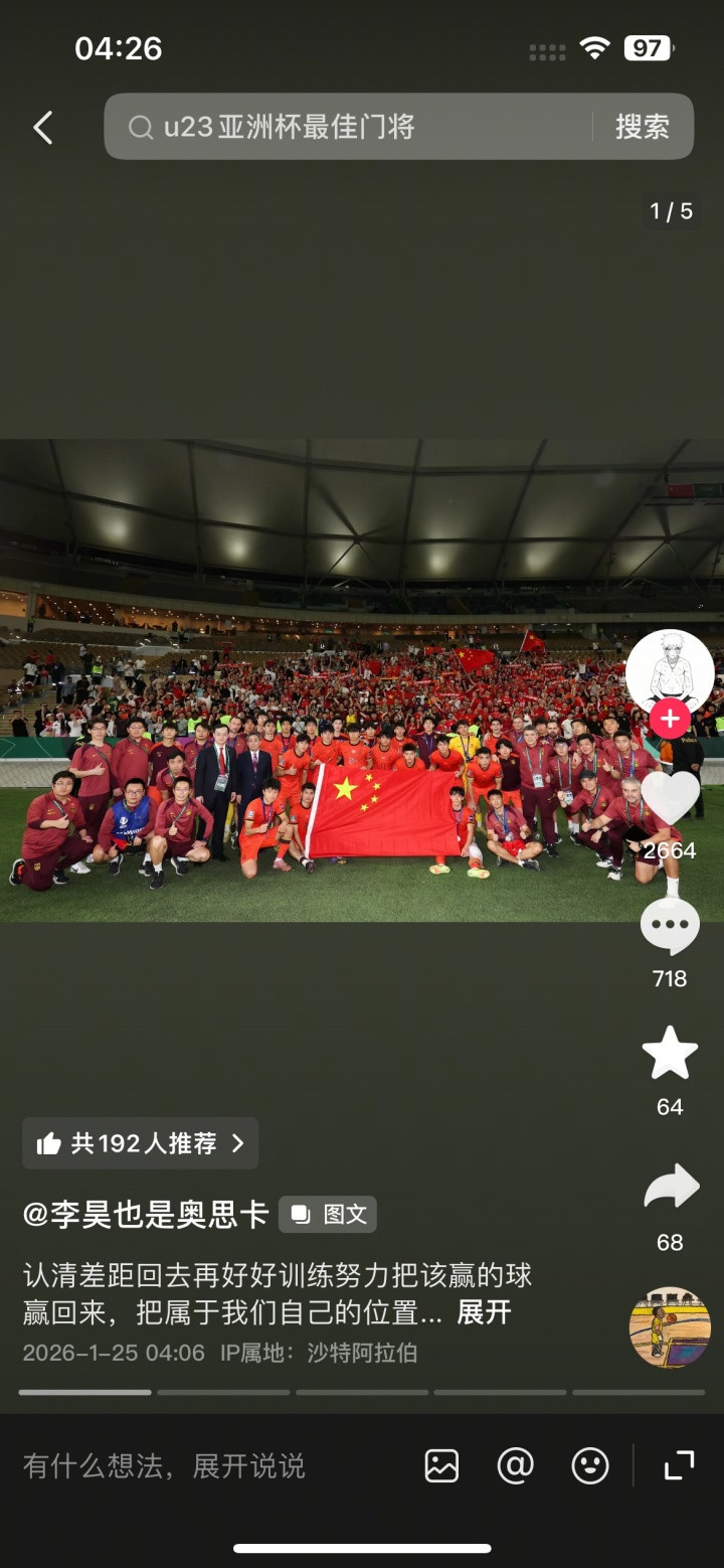 直播吧01月25日讯U23亚洲杯决赛,国足0-4不敌日本无缘冠军,赛后国足U23门将李昊更新社媒。